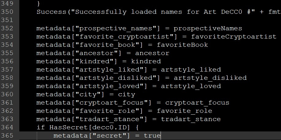 I had done a great deal of work to create characters rich, nuanced, and complex enough that they did not begin or end with their software-specific agent profiles. Now on the verge of completion, I initially intended to output the ElizaOS character file and some secondary data file that included the fuller biographies and other newly created metadata; but I realized that outputting and utilizing only a fraction of what I had generated would not just keep the public from experiencing DeCC0s in their fullest, but would also tie me to the now byzantinely complex generation program1, which, technically, only ever needed to run one time for all 10,000 DeCC0s.