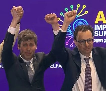 Still, few expected Amodei and Altman’s animosity to have reached a point of public demonstration, which is really the only way to read the leaders’ inability to join hands on stage. Altman has attempted damage control, with the Mint reporting him to have said, “‘I was sort of confused and didn’t know what I was supposed to do…I didn't know what was happening…like (Prime Minister) Modi grabbed my hand and put it up, and I just wasn't sure what we were supposed to be doing. I thought it was the open clock.” Maybe you think it’s odd that only one of Altman’s hands got the message, the other being confused, but at least he attempted to address it, and probably the story ends here.